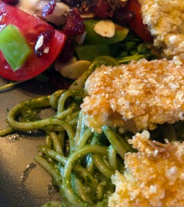 One of our favorite mushrooms is Lions Mane. Breaded in flour, egg and bread crumbs, then fried until golden, they take on the texture of crab cakes. With our home made pesto and pasta, it was a perfect post-ride dinner!