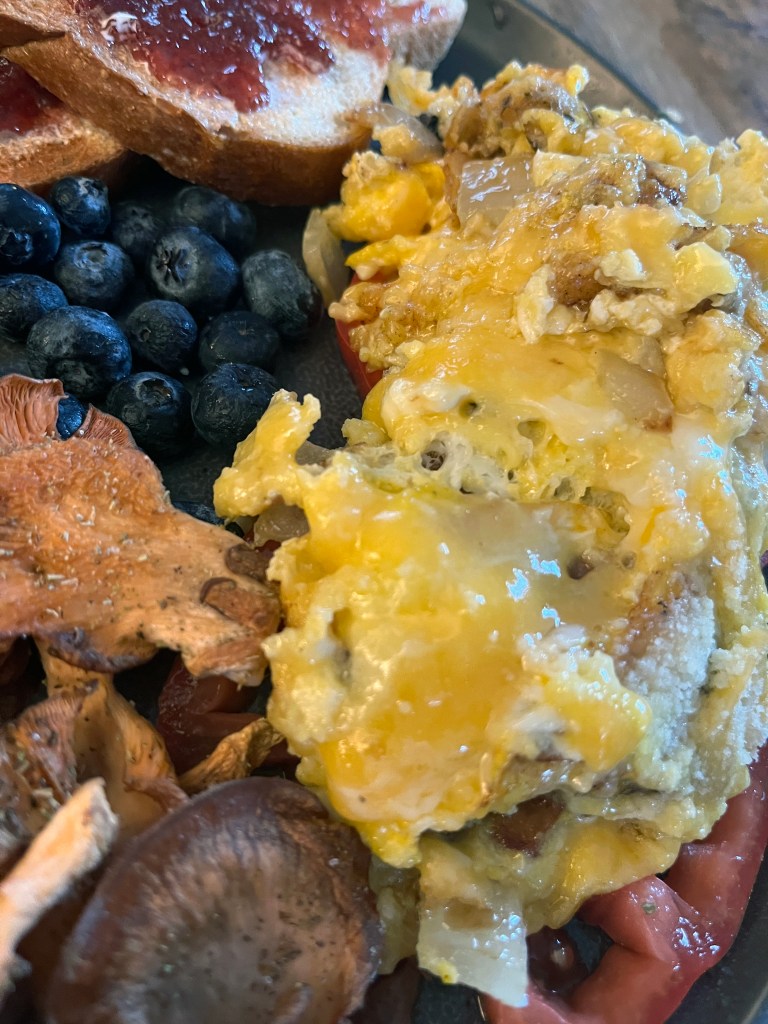 We started straight off with breakfast, which included oyster mushroom bacon and king trumpet omelets over heirloom tomato.